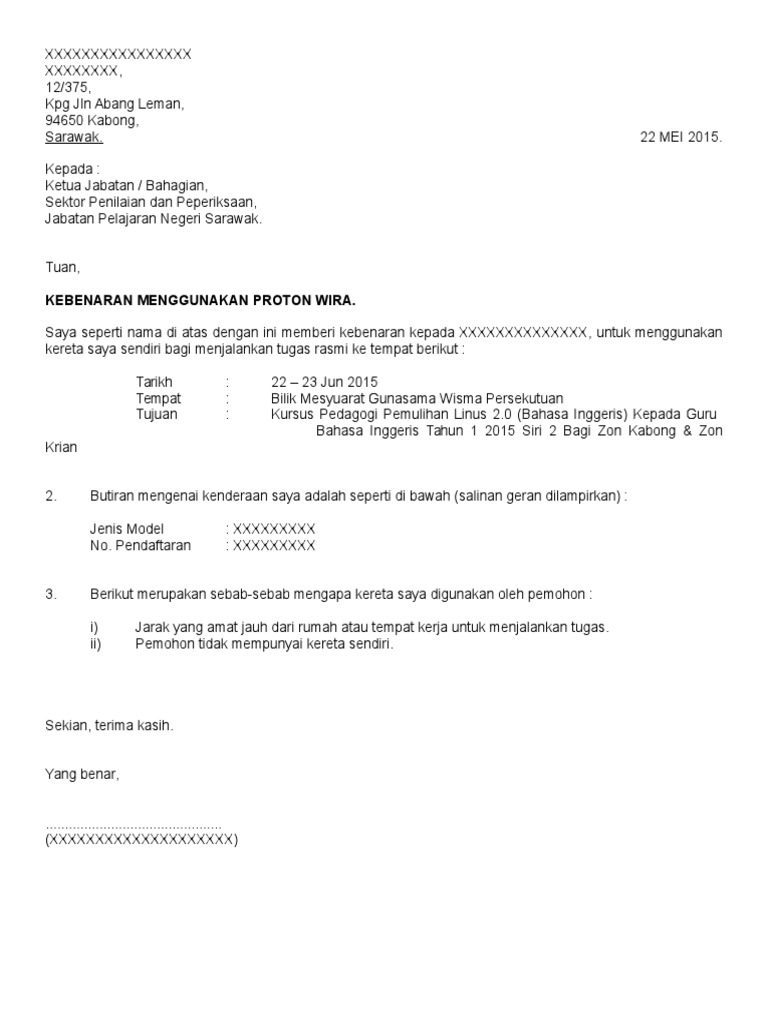 Surat Kebenaran Meminjam Kenderaan Pdf